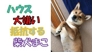 【柴犬】ハウスに入れられるのが嫌みたい。そういう仕草が、とってもかわいい。抵抗する姿に癒されます。 Shiba Inu] I don't...