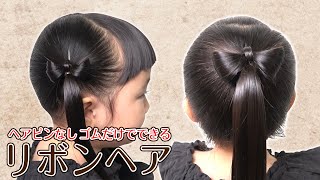【リボンヘア】ママ必見!子供が喜ぶ簡単可愛いヘアアレンジ♪【ゆるまないポニーテールの作り方&ツインテール】